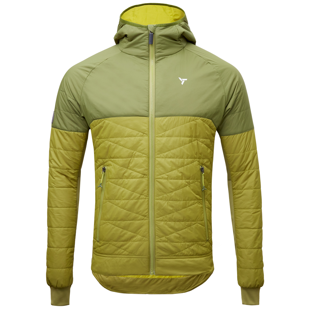 The men's windproof Deruta sports jacket combines lightweight Woven Ultra Light and Windbreaker materials for optimal wind protection and comfort during movement. The jacket is insulated with Primaloft® Silver Insulation Active 60 g, providing warmth while remaining lightweight. Powertherm side panels ensure proper ventilation and, with slight stretch, allow the jacket to fit perfectly to the body. The front features a full YKK® zipper and two zippered pockets for secure storage. The comfortable anatomically cut hood protects the head and neck, while the extended back and adjustable hem with drawcord provide additional protection against cold. The Deruta jacket is suitable for winter outdoor activities or as an insulating layer under a shell jacket, making it a versatile and reliable choice for active men in cold weather.