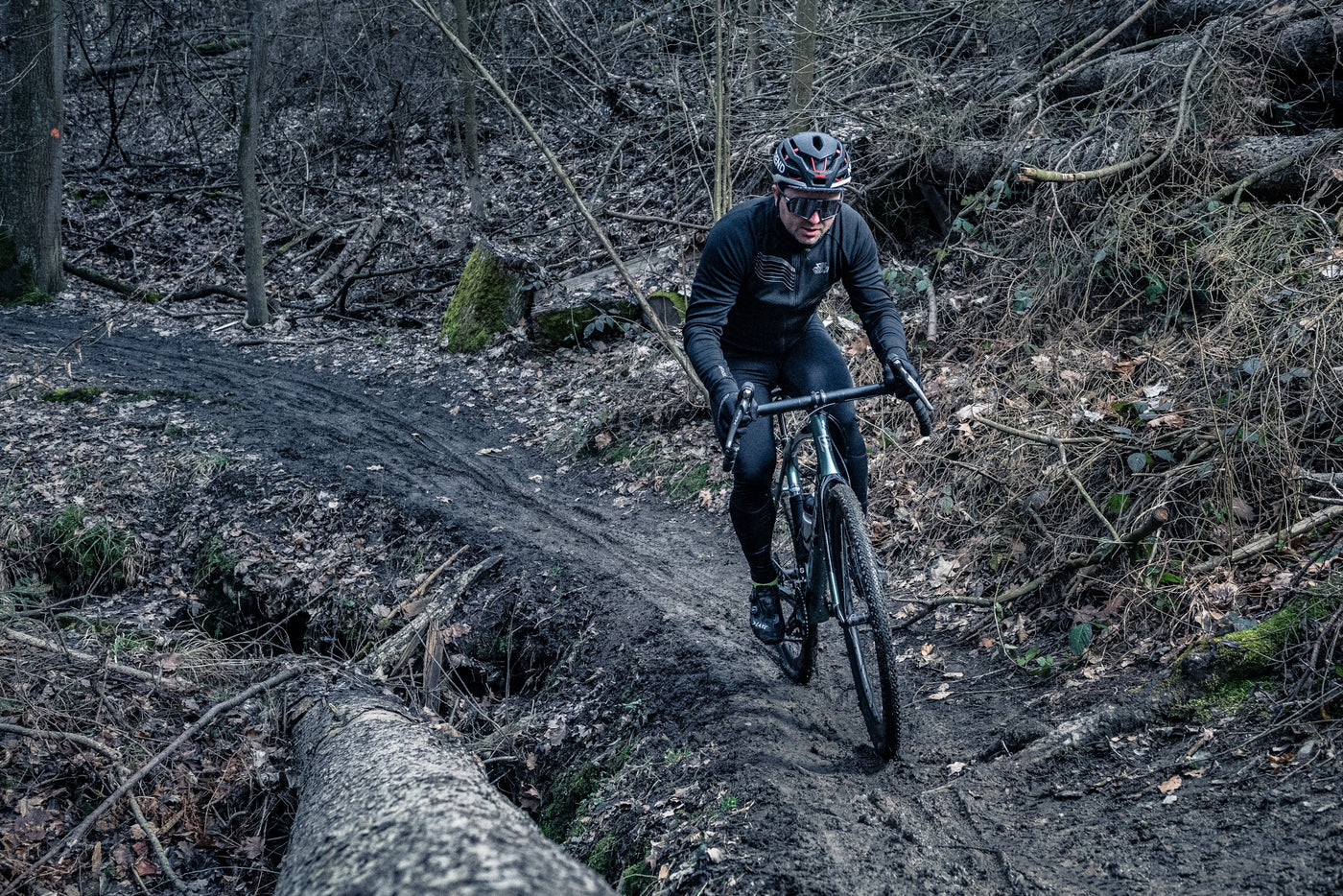 Men slim thermal jersey from densely woven fabric with brushed inside. There is a full front zipper and prolonged back with a non-slip silicon strap.