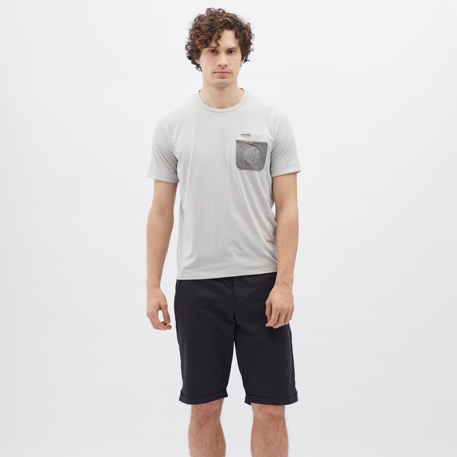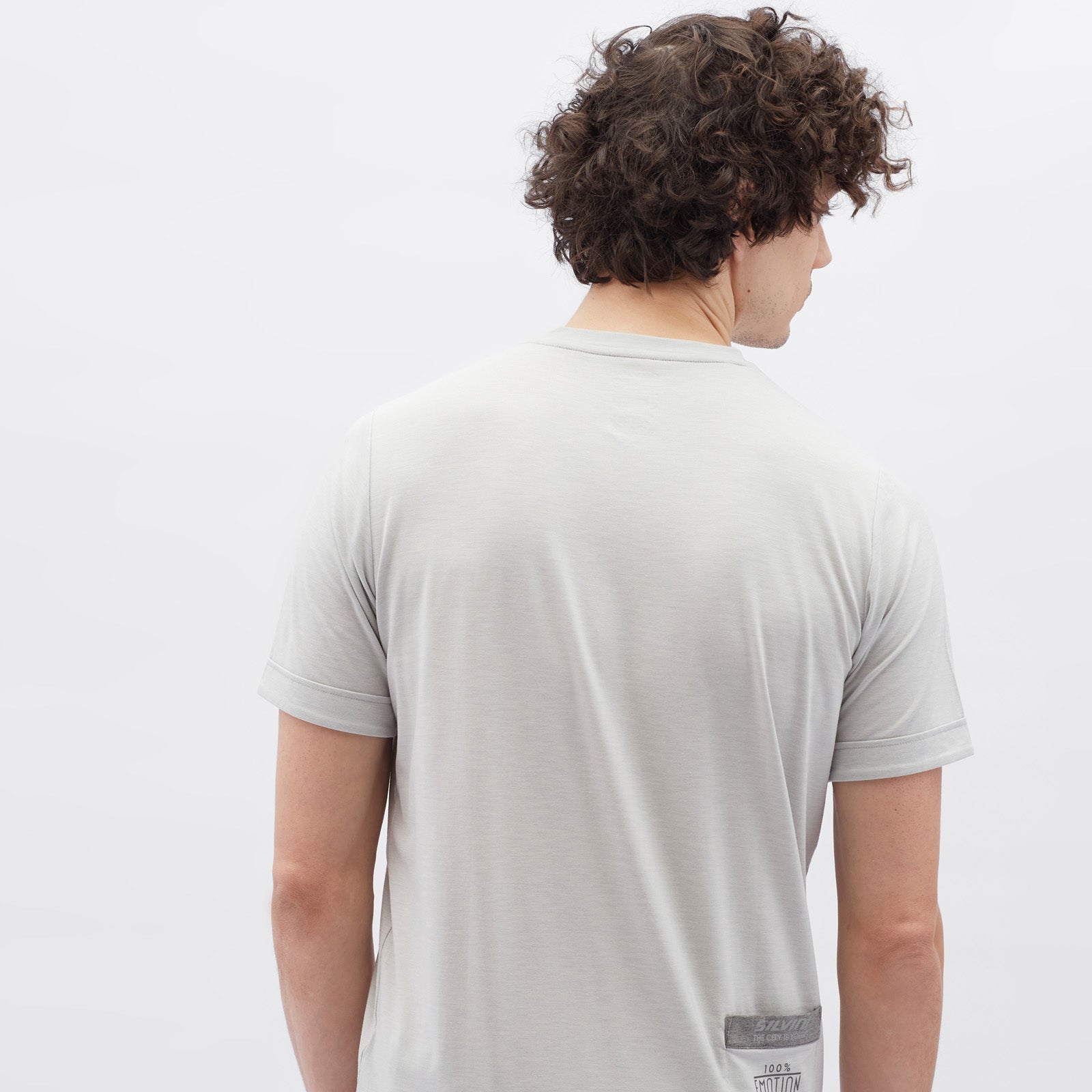 Calvisio men’s T-shirt made from soft recycled fabric with high modal content. Breathable, stretchy, with pocket and extended back, perfect for city life and leisure.